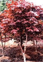 The "Coral Bark" maple is a great piece for any landscape with brilliant bright red to pink bark in the colder winter months changing to red/green during the summer. Sporting green leaves turning to flaming bright gold / yellow in the fall, this is one of our favorites. Foliage: Deciduous, Mature Height: 15-25 feet, Mature Width: 15-20 feet, Sunlight: Full sun, partial sun, Soil: Moist/well drained | ![]() |
